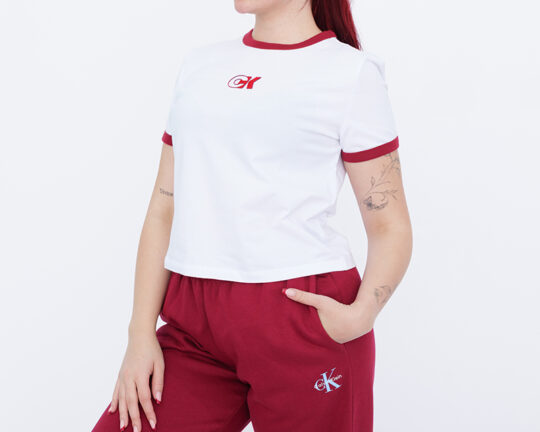 Dámské bílé triko s krátkým rukávem a stříbrným detailem