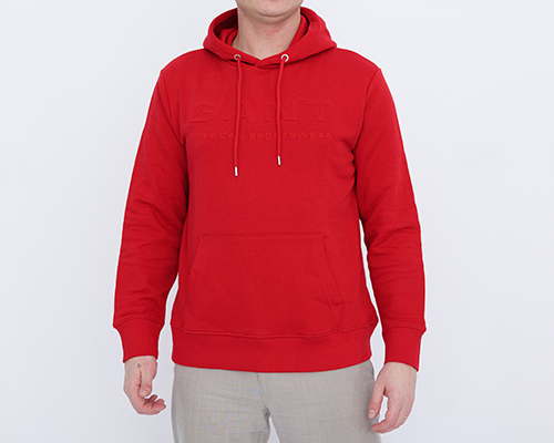 Pánská mikina červené barvy s kapucí a velkou kapsou