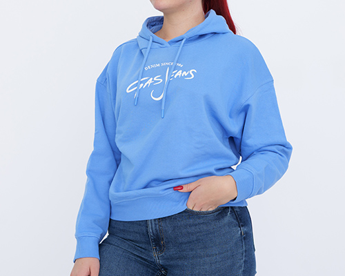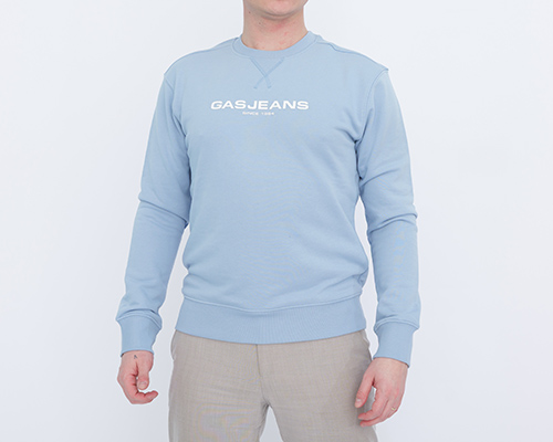 Pánská mikina bleděmodré barvy s bílým logem na prsou