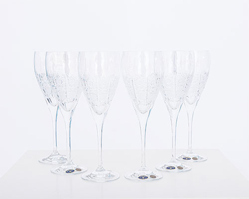 Sklenice na stopce s vroubkovaným motivem, 6 ks