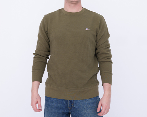 Pánská mikina khaki barvy s kulatým výstřihem a malým logem na prsou
