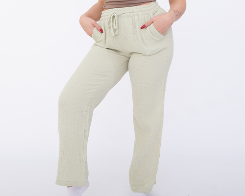 Dámské pohodlné mušelinové kalhoty na stažení v pase