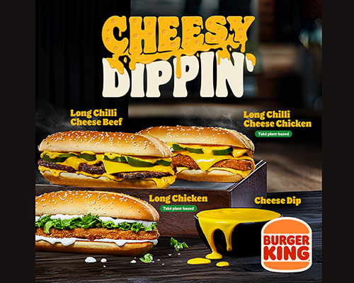 Nový Cheesy Dippin’ je tady – longy, burgery, nugetky i hranolky chutnají ještě líp s horkým sýrovým dipem. Tak se připravte na pořádnou cheesy