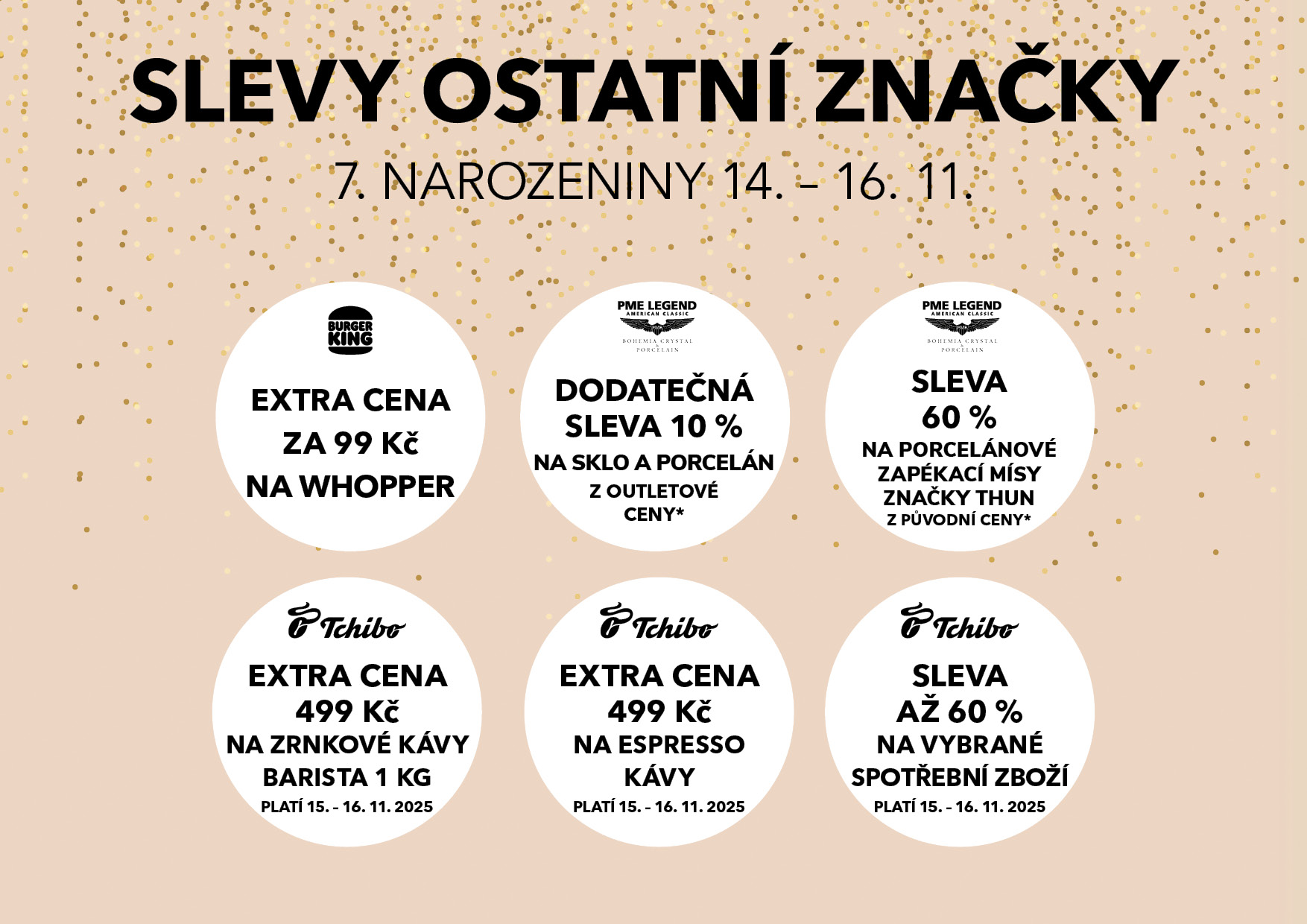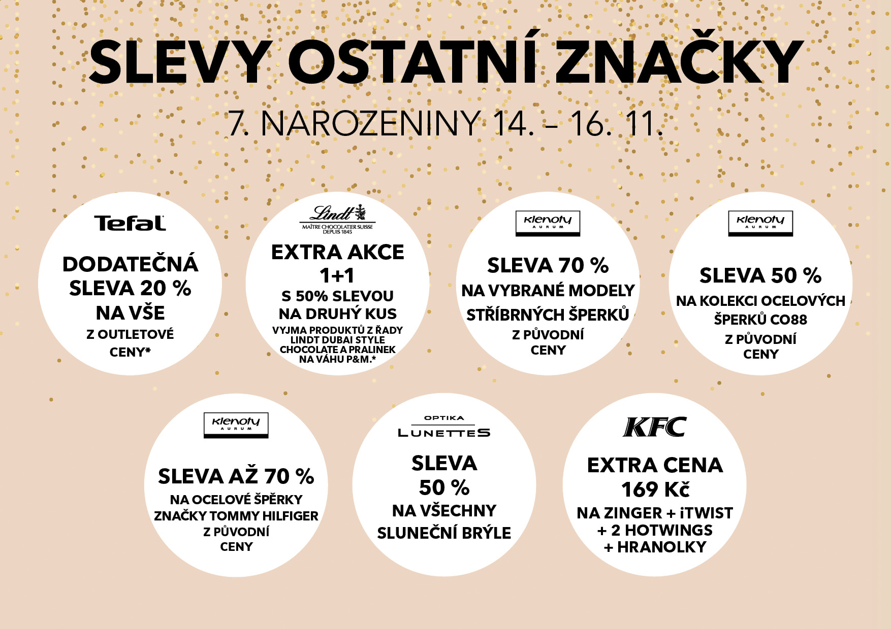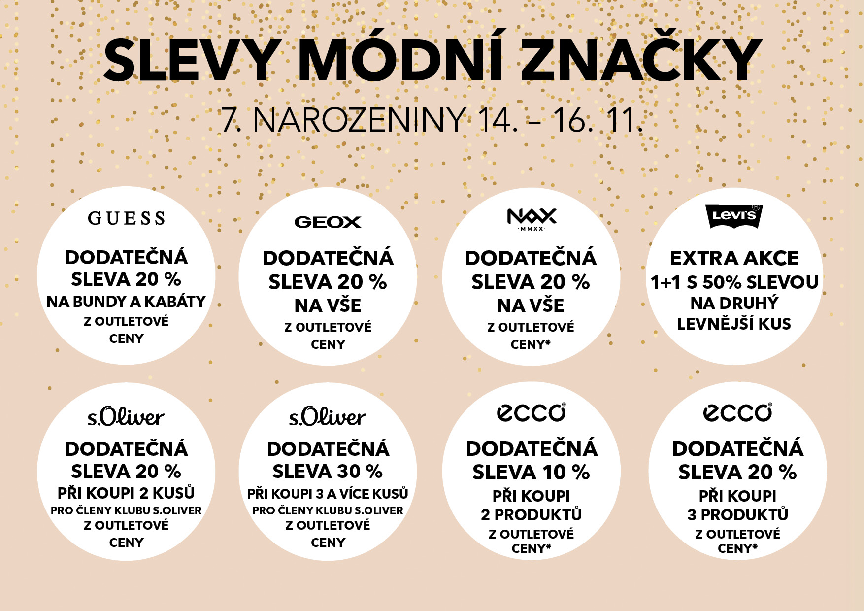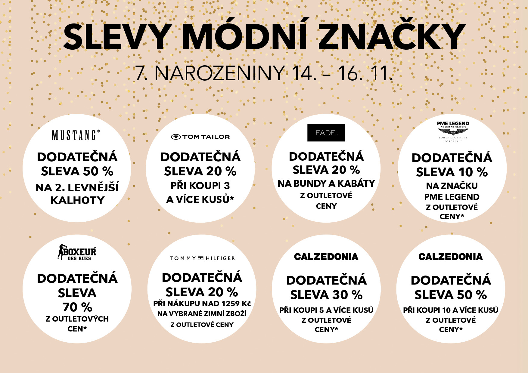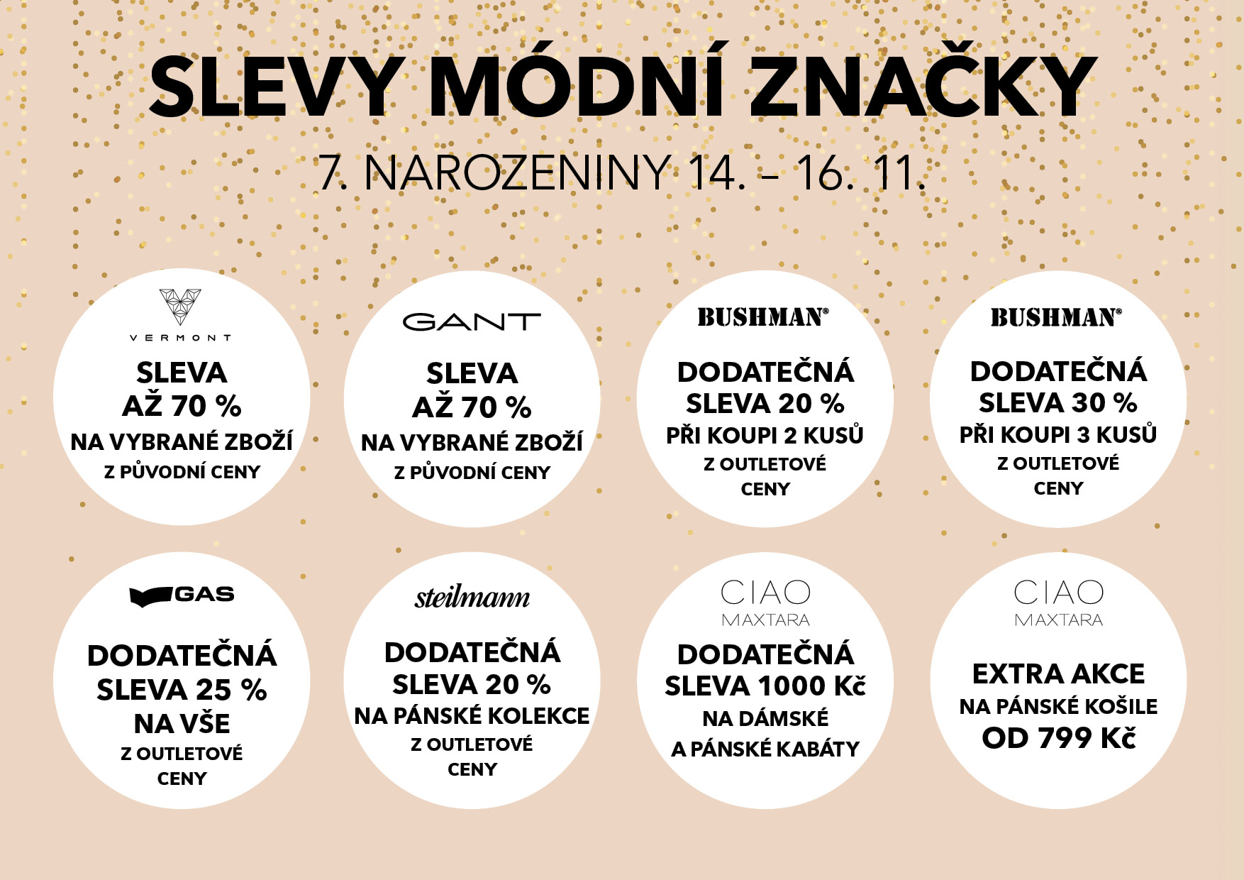 Narozeninové slevy a dárky pro vás máme přichystány po celý víkend. Využijte skvělé nabídky svých oblíbených značek a užijte si neuvěřitelné slevy až 70 %, extra slevy na celý nákup, akce 1+1 zdarma a dárky k nákupu. Skvělé slevy na celý narozeninový víkend pro Vás ještě připravujeme, brzy je najdete zde či na našich sociálních sítích. Můžete je využít k prvním vánočním nákupům nebo si prostě jen tak udělat radost.