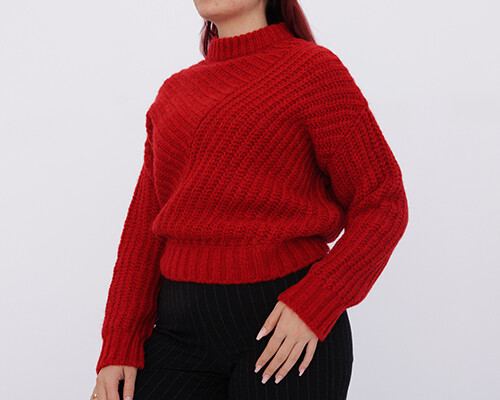 Dámský hodně volný svetr červené barvy, pohodlný *za výši aktuální slevy neručíme, informujte se na přímo na prodejně