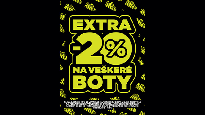 Využijte akční nabídku od prodejny Alpine Pro a získejte Dodatečnou slevu 20 % na obuv. Sleva se vztahuje na veškerou obuv a bude odečtena na pokladně z aktuální ceny uvedené na etiketě. Akce nelze kombinovat. Outletové ceny jsou samy o sobě vždy minimálně o 30 % nižší než ceny v běžných obchodech. Sleva platí od 13. do 26. 4. 2026 nebo do vyčerpání zásob.